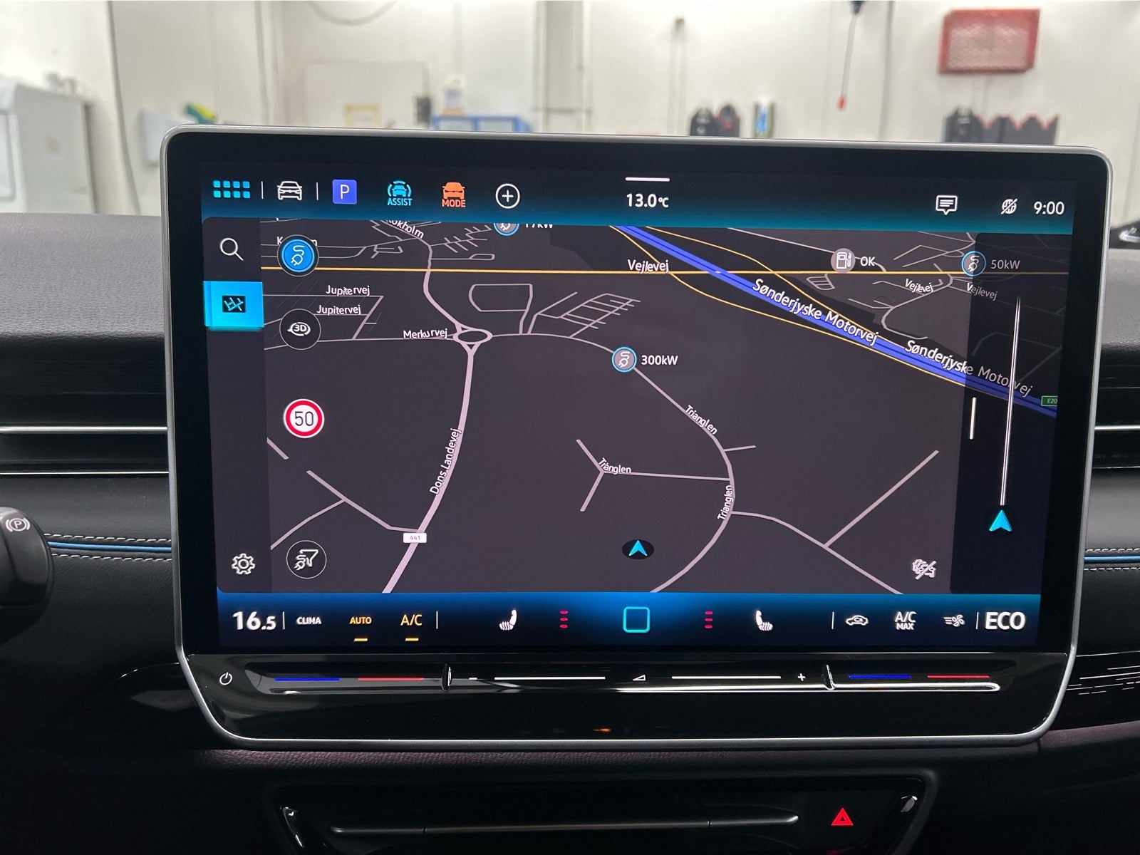 head-up display, matrix LED forlygter, adaptive forlygter, fuld LED forlygter, LED baglygter, 360° kamera, adaptiv fartpilot med kø-assistent, adaptiv fartpilot, vognbaneassistent, blindvinkelsassistent, automatisk nødbremsesystem, automatisk nødassistent, skiltegenkendelse, parkeringssensor (for), parkeringssensor (bag), bakkamera, digitalt cockpit, navigation, apple carplay, android auto, app integration, trådløs mobilopladning, DAB+ radio, internet, stemmebetjening, håndfrit til mobil, USB-C tilslutning, ambientebelysning, 3-zone fuldautomatisk klima, 2-zone klima, varmepumpe, elektrisk kabinevarmer, varme i forrude, varme i rat, sædevarme, el-komfortsæder, el indst. forsæder, el indst. førersæde m. memory, massage i forsæder, massage i førersæde, el-justerbar lændestøtte, justerbar lændestøtte, højdejust. forsæder, højdejust. førersæde, alcantaraindtræk, læderrat, multifunktionsrat, automatgear, nøglefri adgang, nøglefri tænding, el-betjent bagklap, fod betjent bagklap, el-klapbare sidespejle m. varme, el-sidespejle m. varme, aut. nedbl. bakspejl, områdebelysning, mørktonede ruder bag, 19" alufælge, alufælge, LED kørelys, kurvelys, fjernlysassistent, automatisk lys, regnsensor, dæktryksmåler, auto hold, elektrisk parkeringsbremse, 4x el-ruder, el-ruder, kørecomputer, dobbelt bagagerumsbund, bagagerumsdækken, splitbagsæde, isofix, alarm, træthedsregistrering, ESP, antispin, airbag, 7 airbags, dobbelt airbags, udv. temperaturmåler